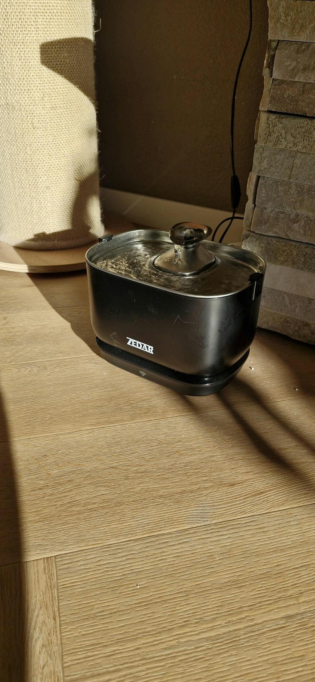Der Zedar WF600 ist ein intelligenter Trinkbrunnen mit einem 2,5-Liter-Reservoir, einer Edelstahlschüssel und einem Zirkulationssystem. Das Wasser wird kontinuierlich umgepumpt und über ein 4-stufiges Filtersystem gereinigt, sodass deine Katze den ganzen Tag über frisches, fließendes Wasser zur Verfügung hat.