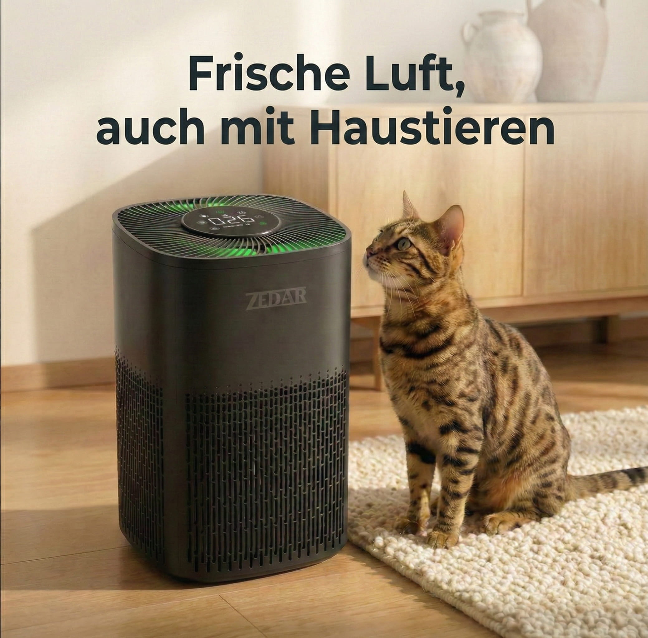 Entfernt bis zu 99,9 % Feinstaub, Pollen, Tierhaare, Schuppen und Bakterien.